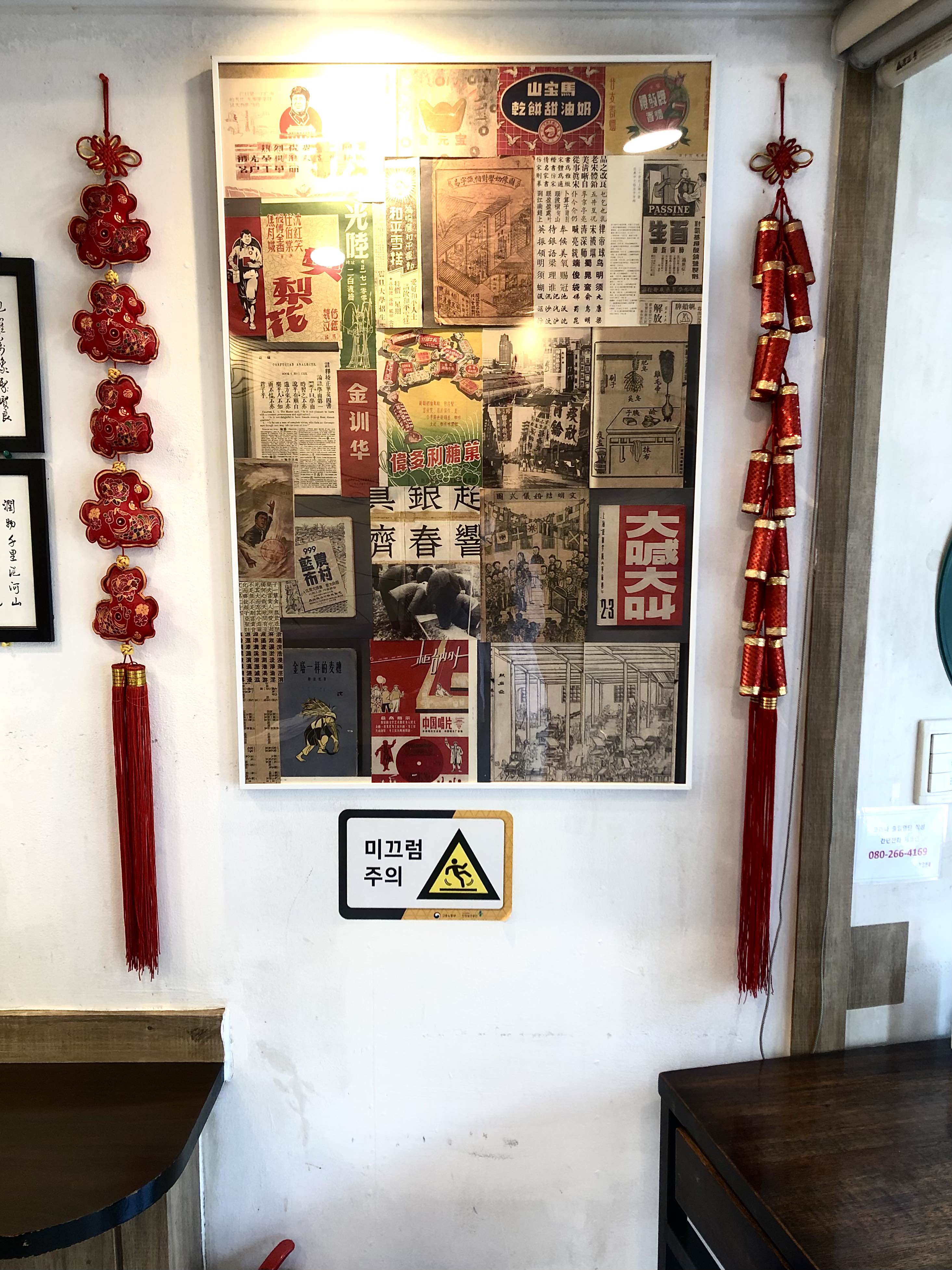 여느 중국요리집이 그러하듯 중국스타일의 장식들이 걸려있었어요.